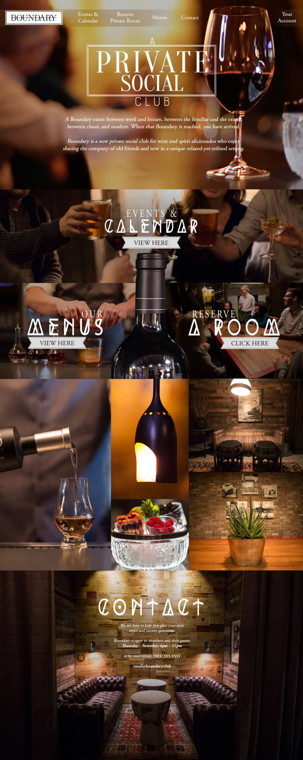 Boundary Club is a private social wine bar in Portland, Or. This was a great opportunity for a extensive web design with a member portal. I also was challenged to shoot some photography for this amazing club. Beautiful color and texture throughout. They have since slightly changed the web design from my original concept, but they did keep the majority of the photography and general theme. Nonetheless it is a great case study and a set of designs I will not forget.